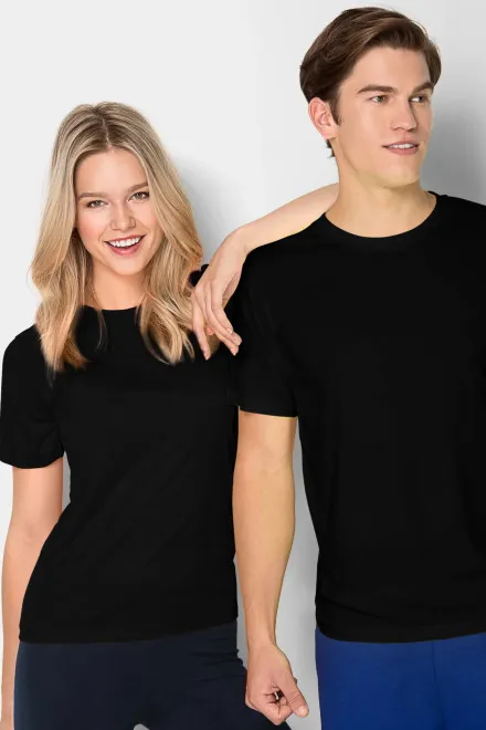 Camisetas de mujer negras lisas sin estampados son la base ideal del armario de toda mujer. Su diseño minimalista y el color negro universal permiten combinarlas fácilmente con faldas, vaqueros y chaquetas, creando siempre un aspecto elegante y con estilo.