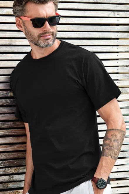 Las camisetas negras lisas para hombre sin estampado son prendas básicas que no deberían faltar en ningún armario. Su diseño limpio y moderno garantiza un uso muy versátil – son adecuadas para el trabajo, para el tiempo libre e incluso para llevar bajo una americana o una sudadera.