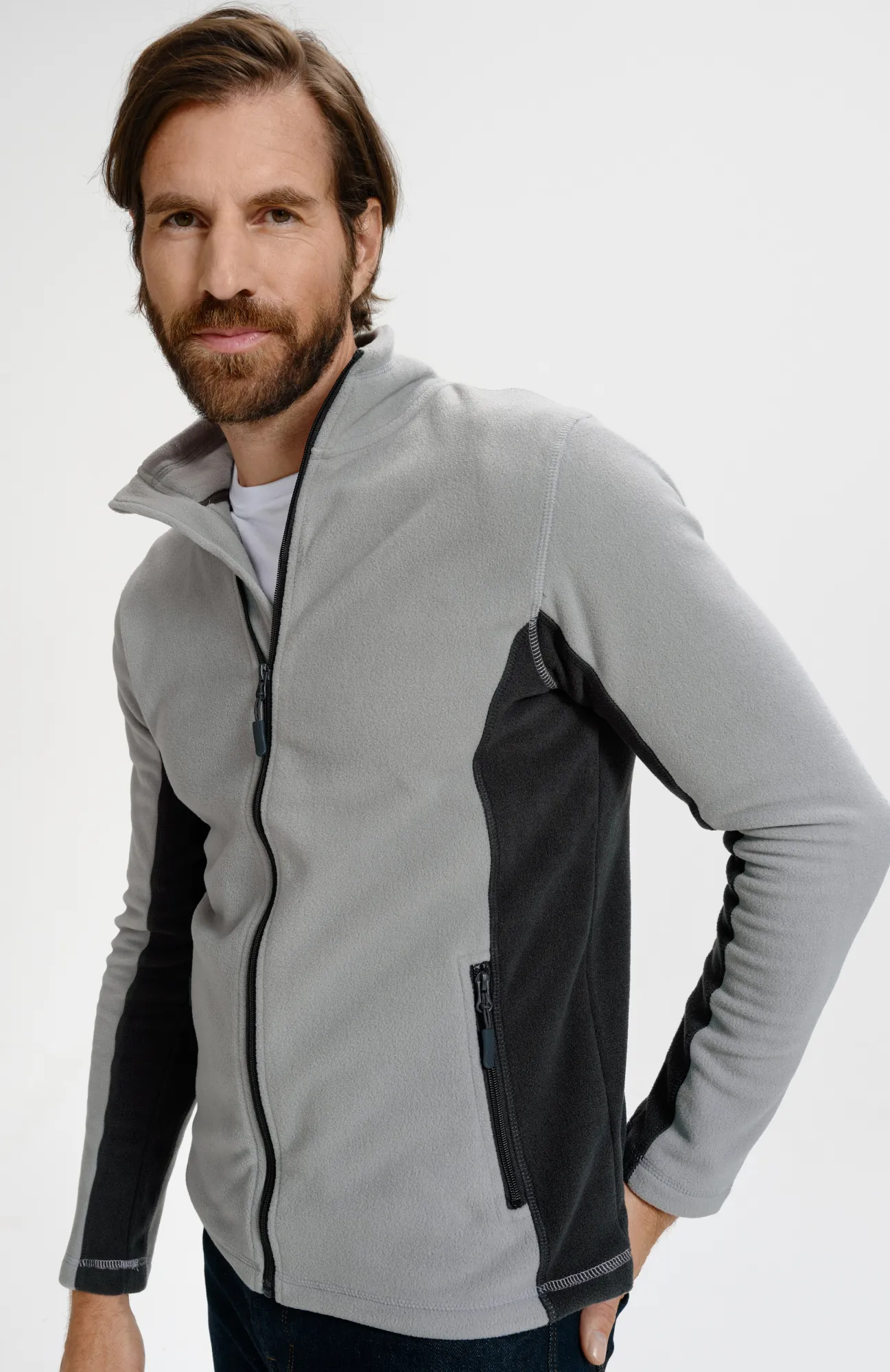 Chaqueta de polar en contraste para hombre, gris claro, L